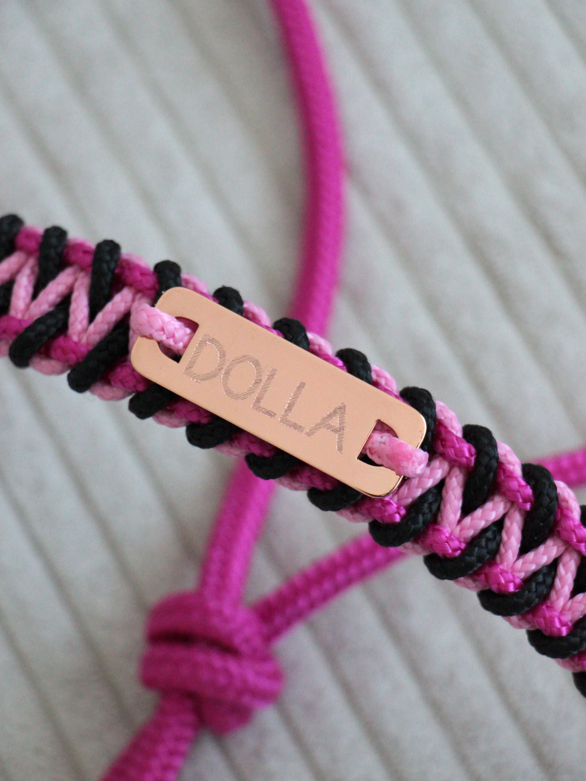 Personnalisez votre licol en faisant graver le nom de votre cheval sur une plaque de la couleur de votre choix, pour le rendre unique et symbolique.